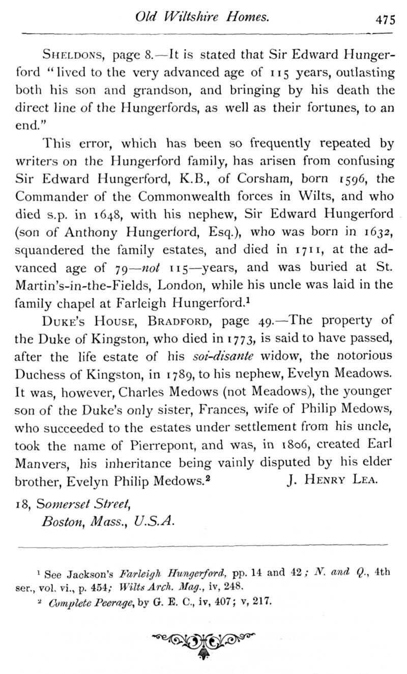 Page 32 Sheldons and the Hungerford family. The Duke's House, Bradford on Avon.