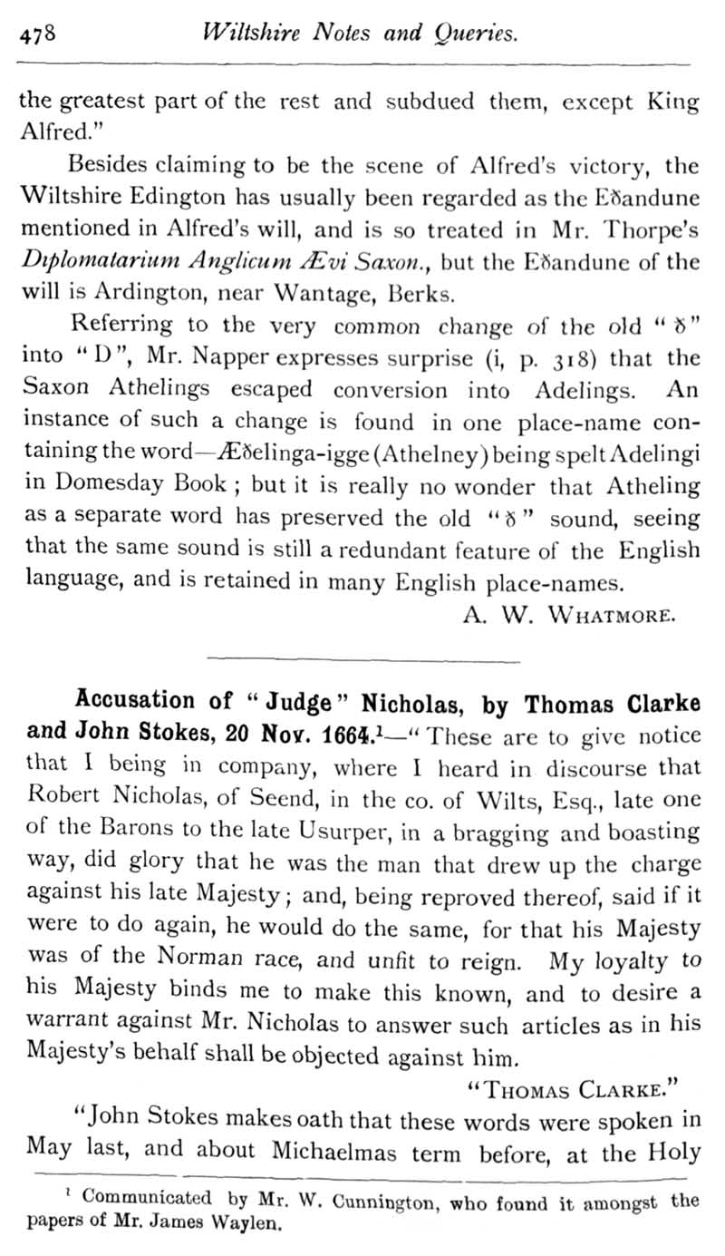Page 35 The battle of Ethandune - case for Edington, Somerset. Robert Nicholas of Seend, 1664.