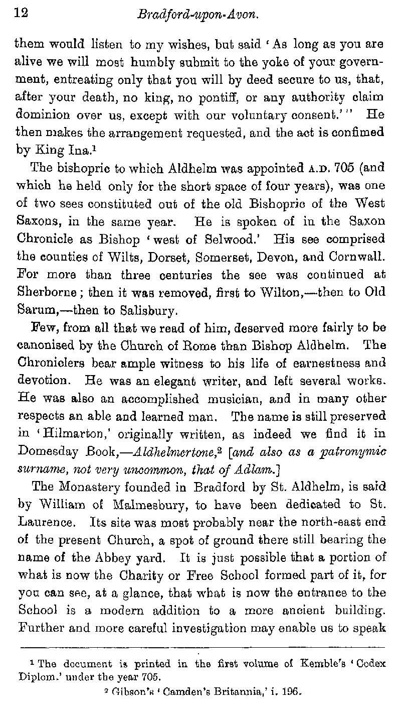 Page 12 History of Bradford on Avon from A.D. 700 -850: Saxons, Aldhelm and monastery.