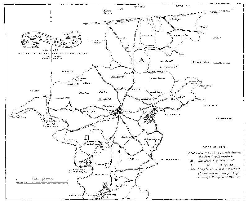 Page 19 Map of the ancient parish and manor of Bradford on Avon showing its extent in 1001.