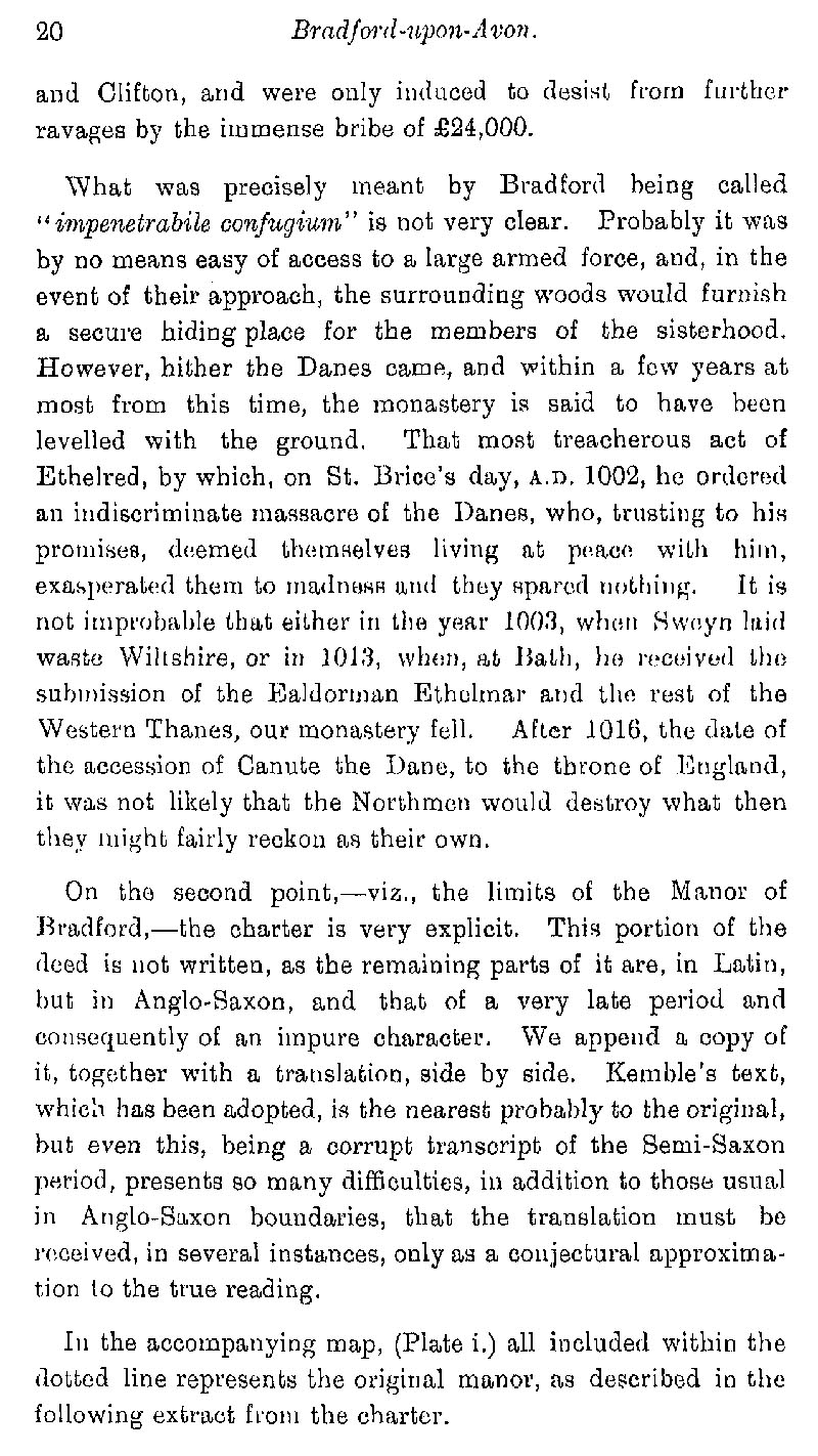 Page 21 History of Bradford on Avon from 1000-1086. Saxon boundaries as listed in the Saxon charter of 1001.