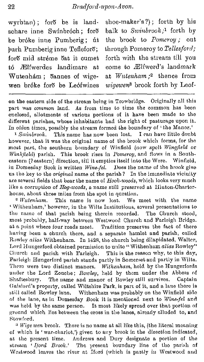 Page 23 History of Bradford on Avon from 1000-1086. Saxon boundaries as listed in the Saxon charter of 1001.