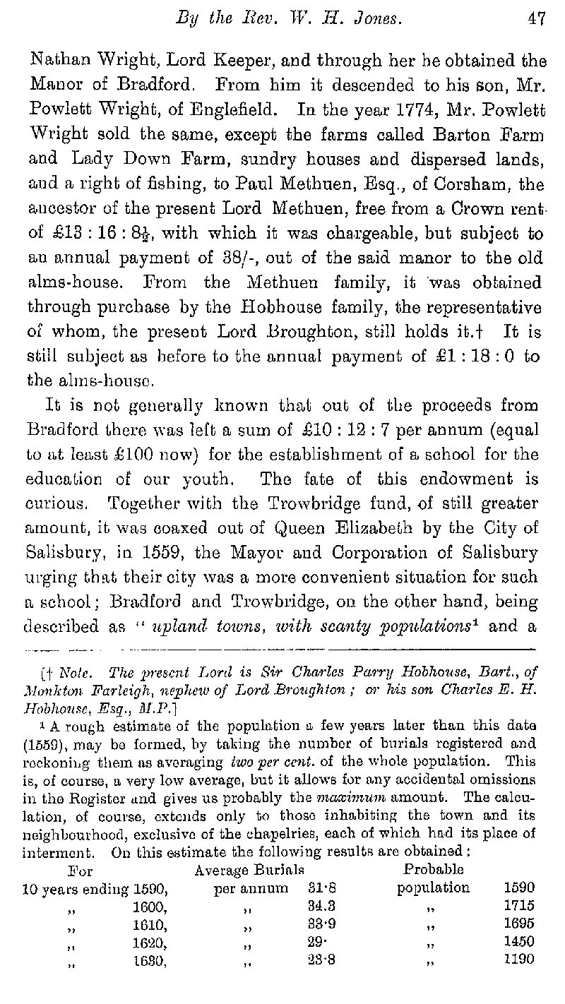 Page 50 History of Bradford on Avon from 1500-1600; descent of manor, loss of school to Salisbury, population estimates.