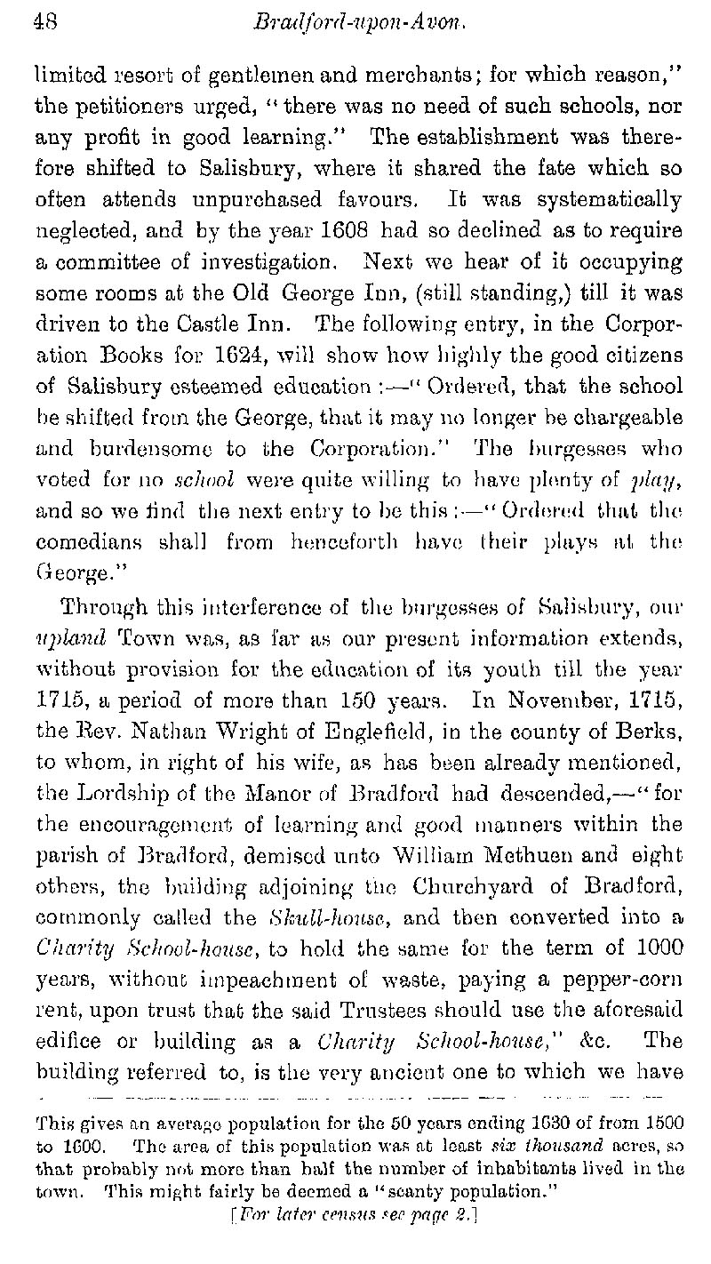 Page 51 History of Bradford on Avon from 1500-1600; loss of school to Salisbury, Charity School House.