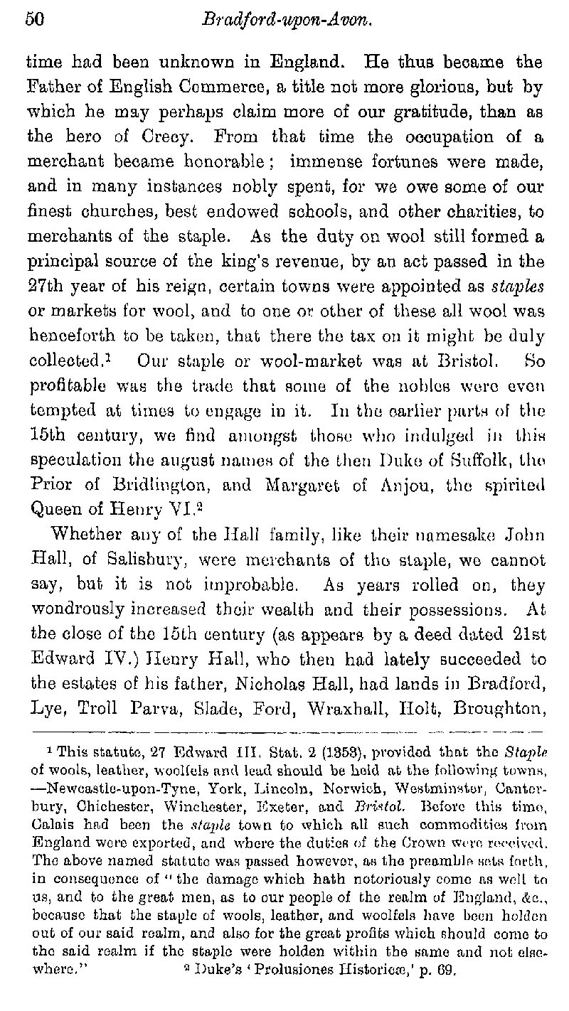 Page 53 History of Bradford on Avon from 1500-1600; cloth making, Hall family.