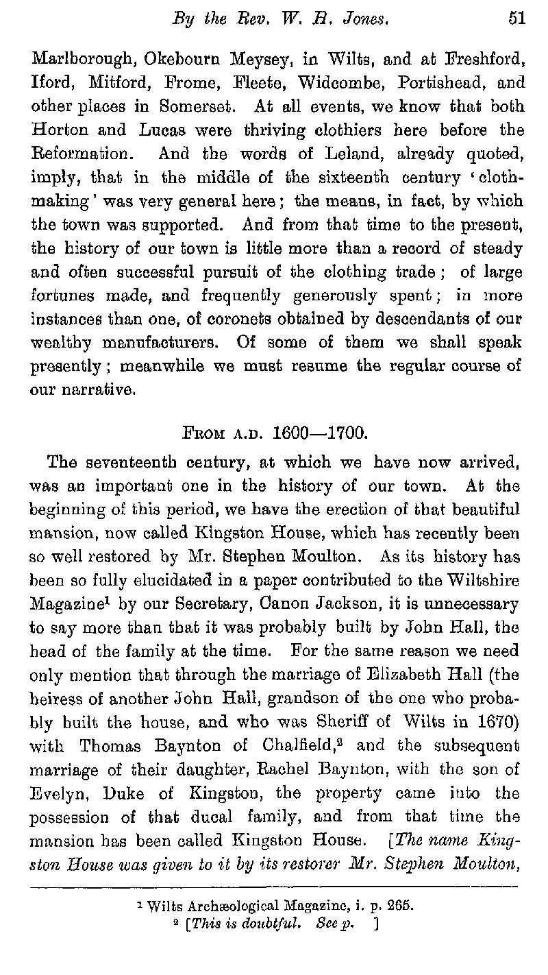 Page 54 History of Bradford on Avon from 1500-1600; cloth making. History of Bradford on Avon from 1600-1700, Kingston House.