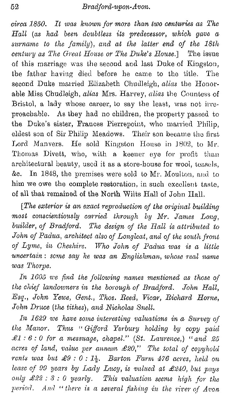 Page 55 History of Bradford on Avon from 1600-1700; Kingston House (The Hall)