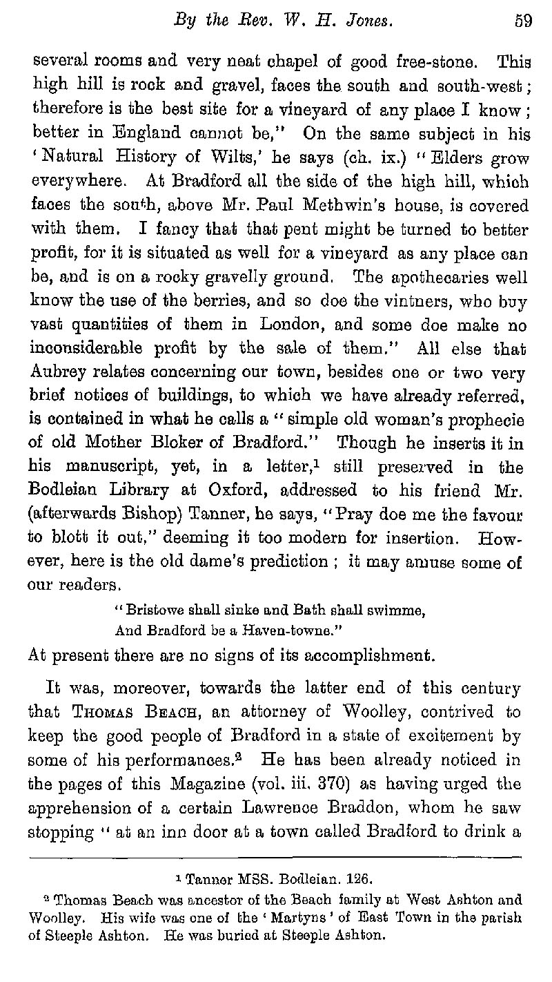 Page 62 History of Bradford on Avon from 1600-1700; visit of John Aubrey; Thomas Beach.