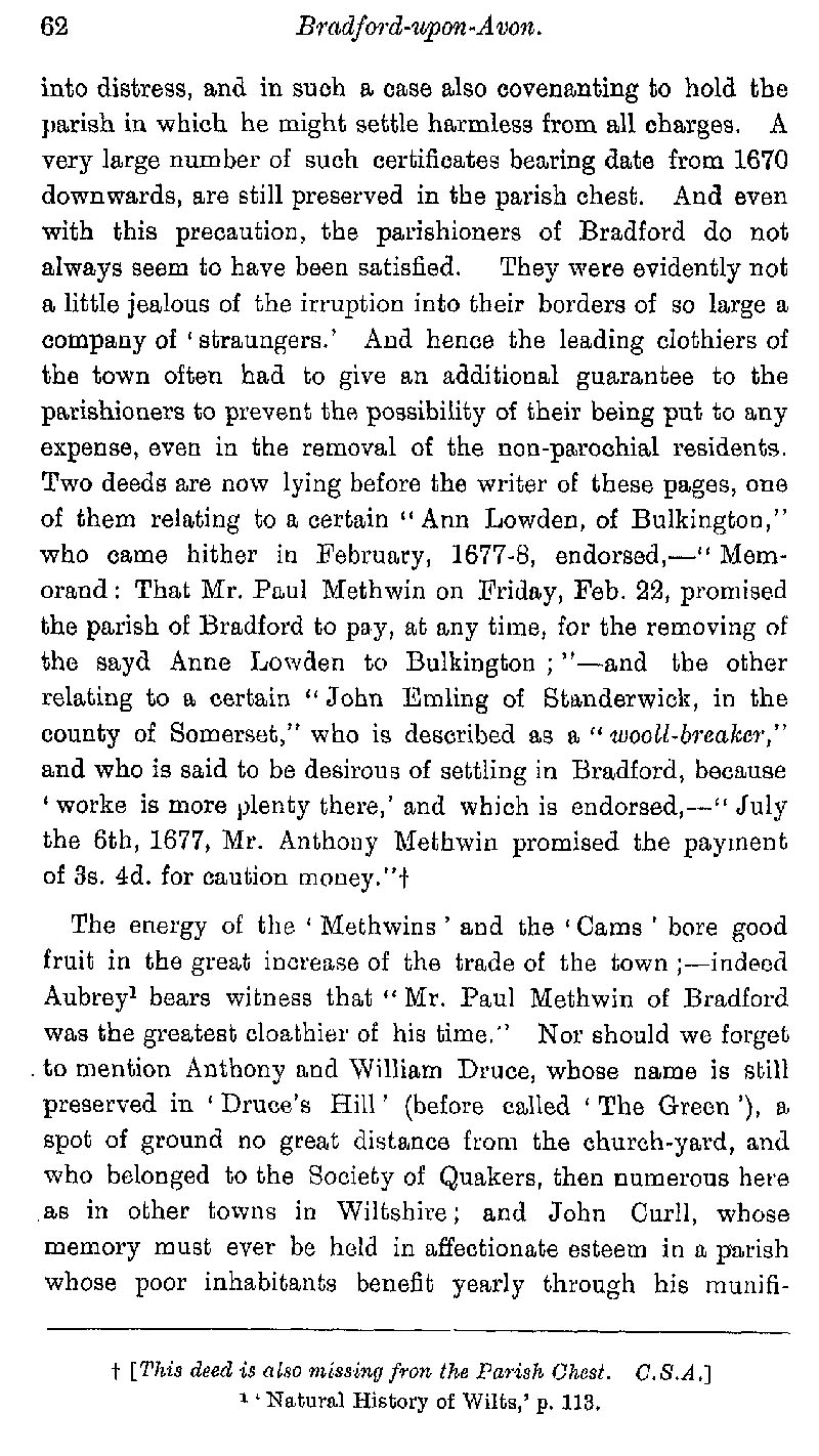 Page 65 History of Bradford on Avon from 1700-1800; increase in population and textile trade.
