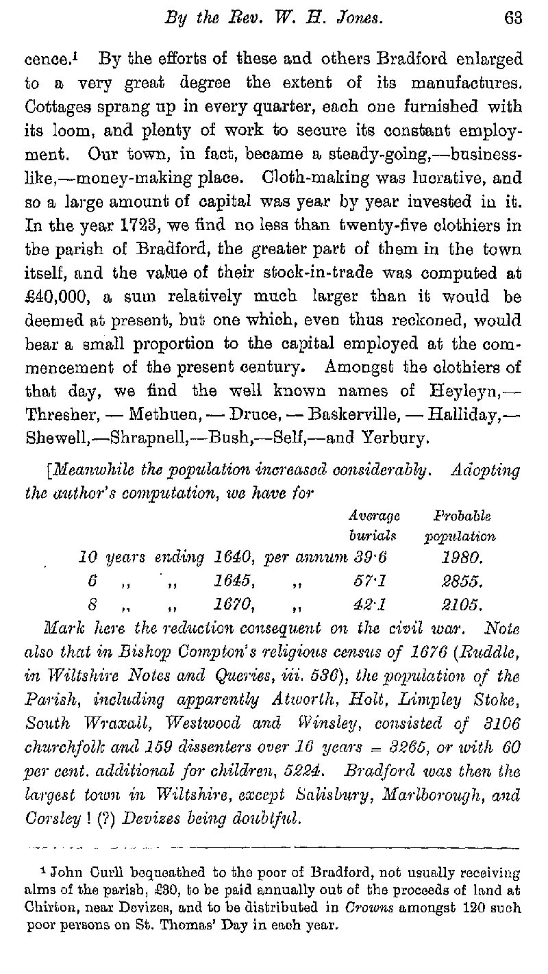 Page 66 History of Bradford on Avon from 1700-1800; increase in population and textile trade.