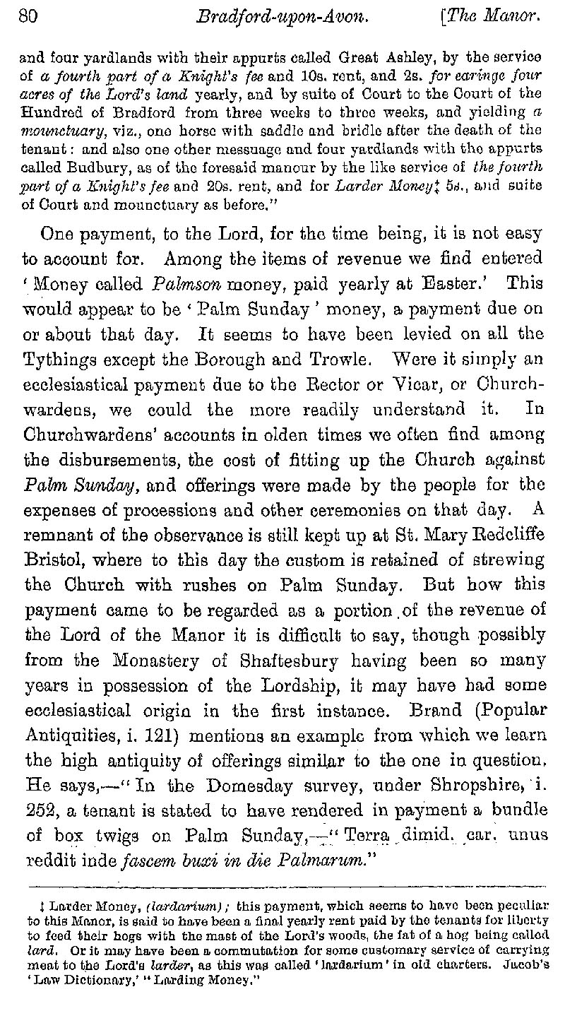 Page 11 History of the manor of Bradford on Avon; payments to the lord of the manor; Blanchard families.