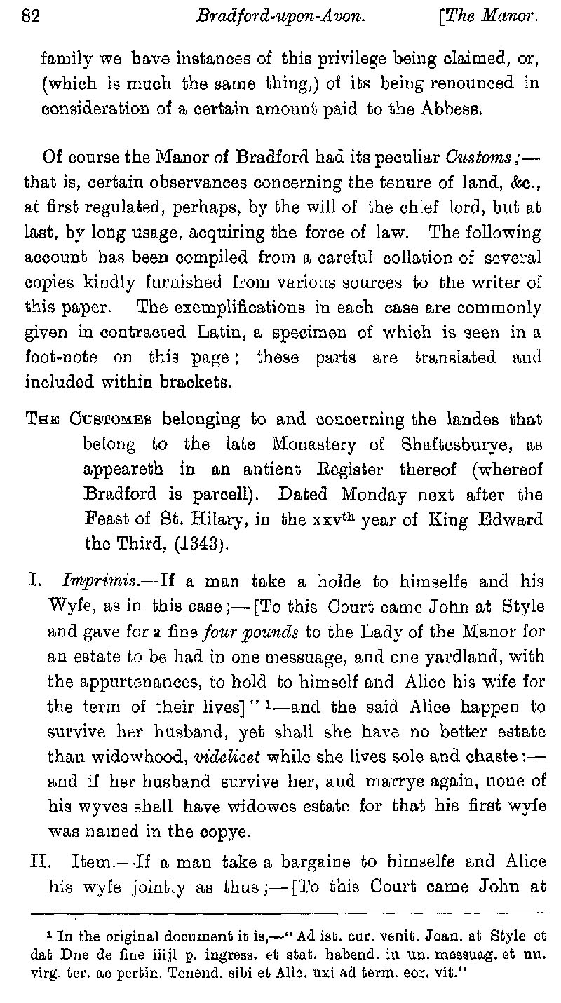 Page 13 History of the manor of Bradford on Avon; benefits and customs relating to the Abbess of Shaftesbury.