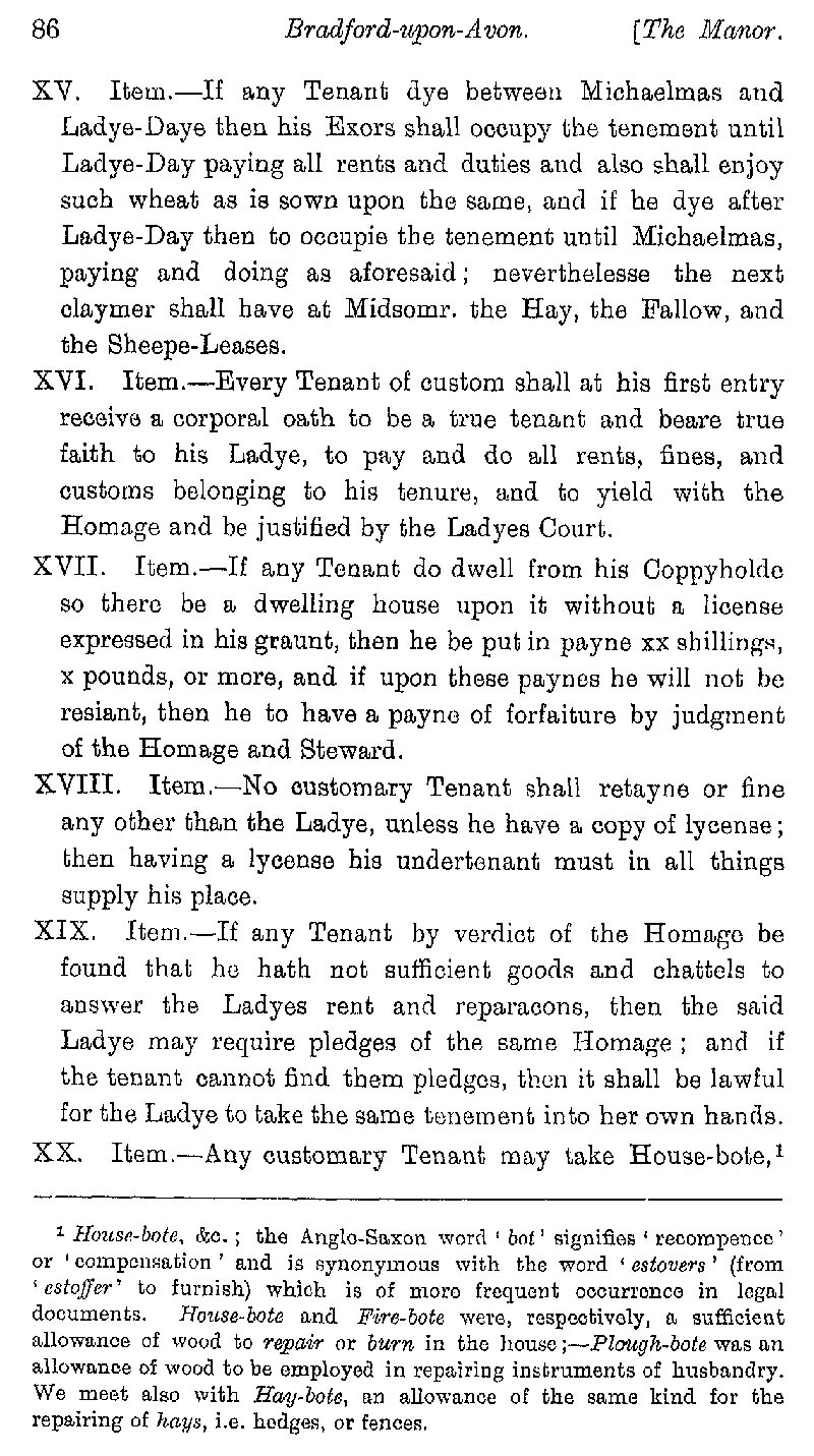 Page 17 History of the manor of Bradford on Avon; benefits and customs relating to the Abbess of Shaftesbury.