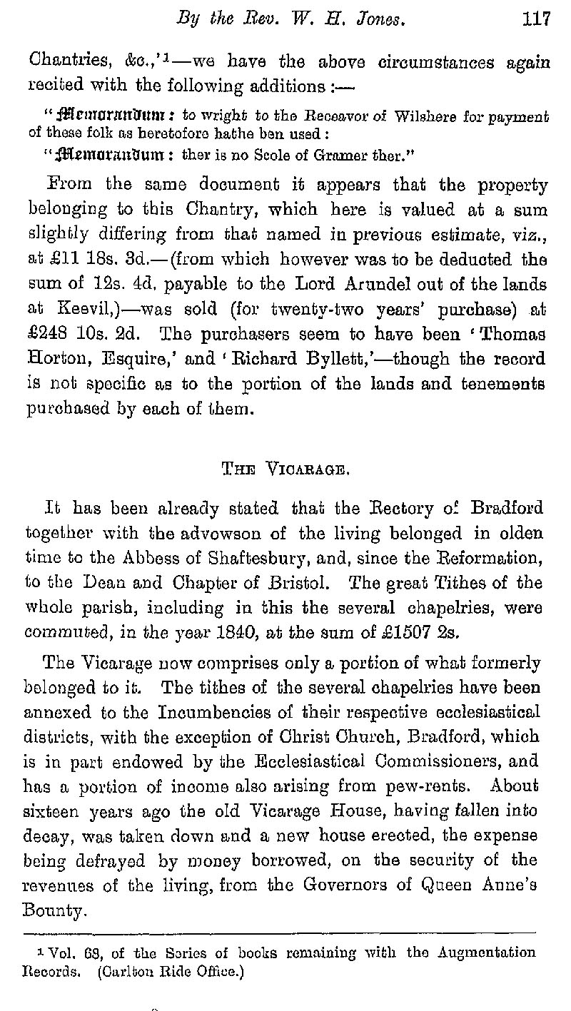Page 19 Holy Trinity Church, Bradford on Avon; the chantries; the vicarage and its income.