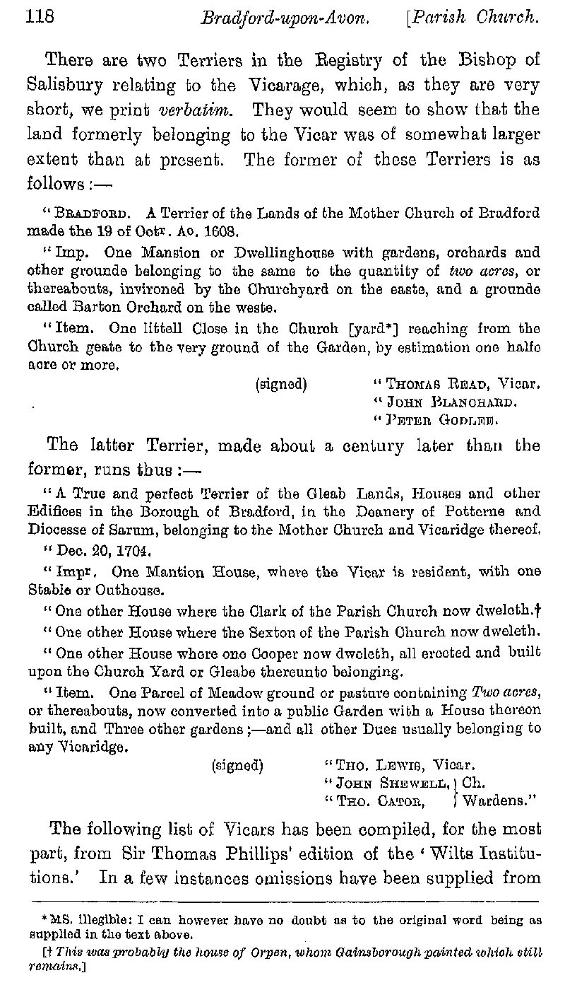 Page 20 Holy Trinity Church, Bradford on Avon; the chantries; the vicarage and its income.