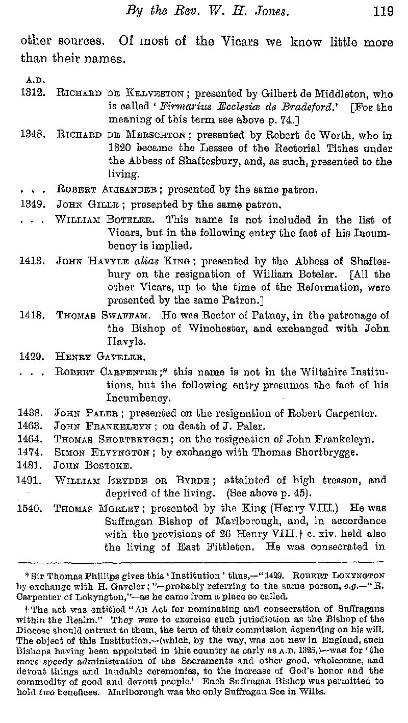 Page 21 Holy Trinity Church, Bradford on Avon; the chantries; list of vicars.