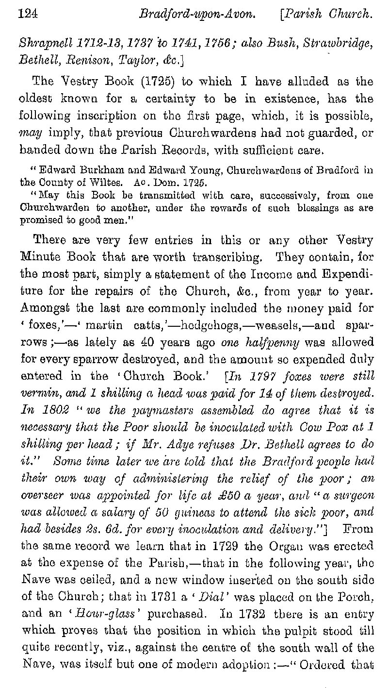 Page 26 Holy Trinity Church, Bradford on Avon; the chantries; church and parish registers.