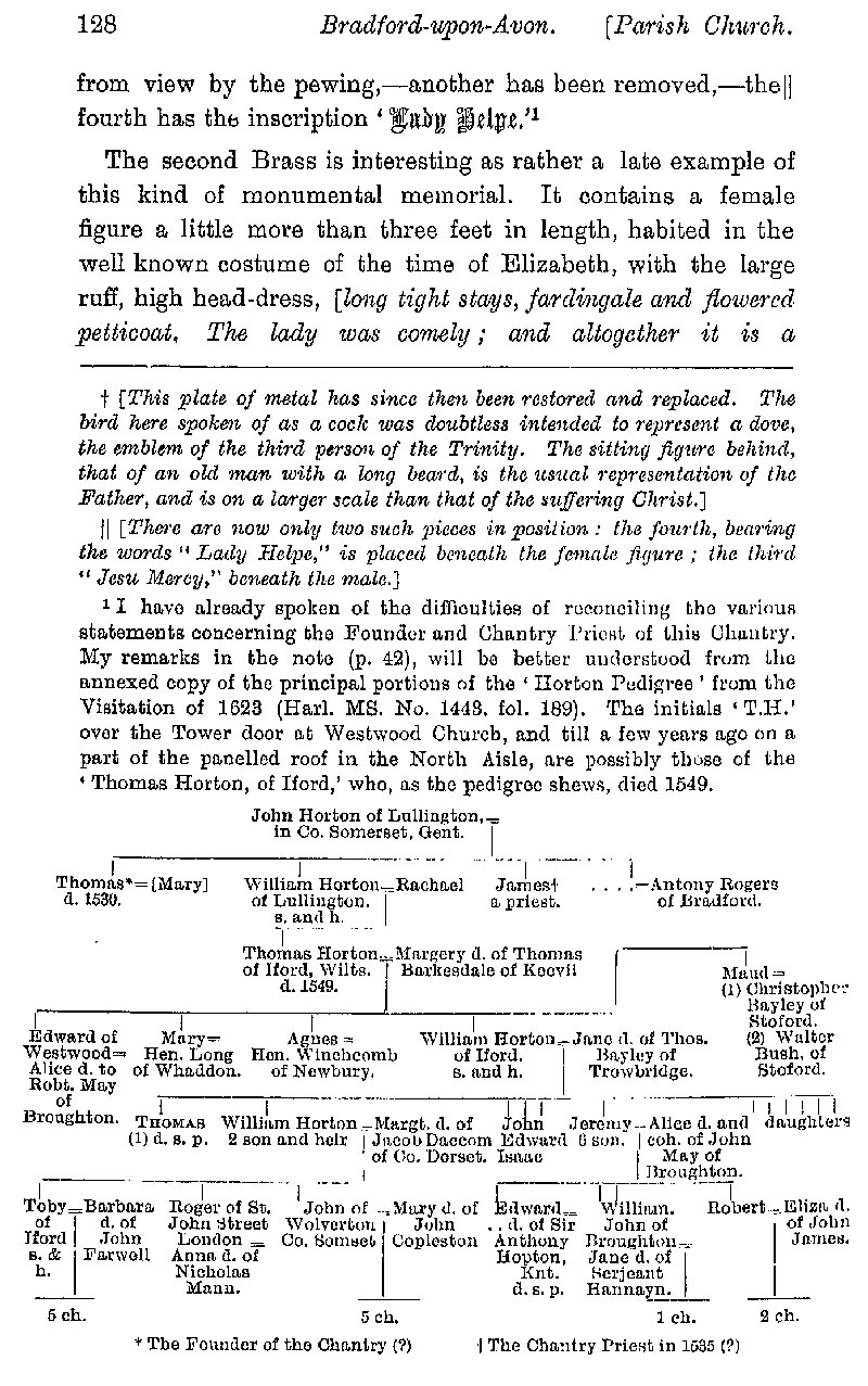 Page 31 Holy Trinity Church, Bradford on Avon; monumental memorials and inscriptions and brasses; pedigree of Horton family.
