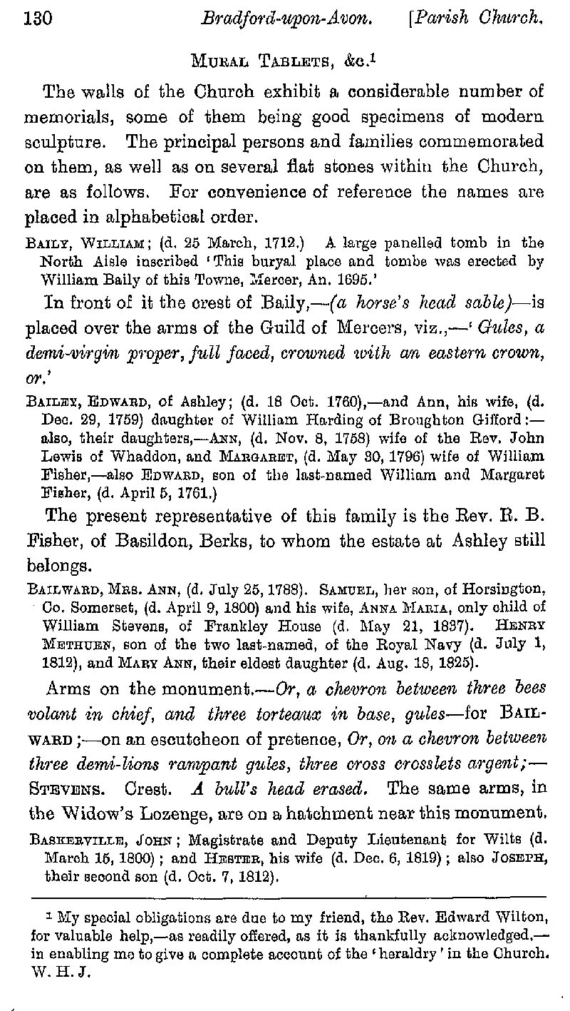 Page 33 Holy Trinity Church, Bradford on Avon; mural memorial tablets; Bailey, Bailward and Baskerville.