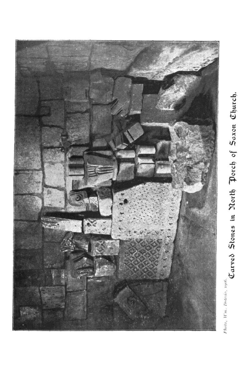 Page 56 Photograph of the Saxon Church of St. Laurence, carved stones in the north porch, Bradford on Avon. 1906