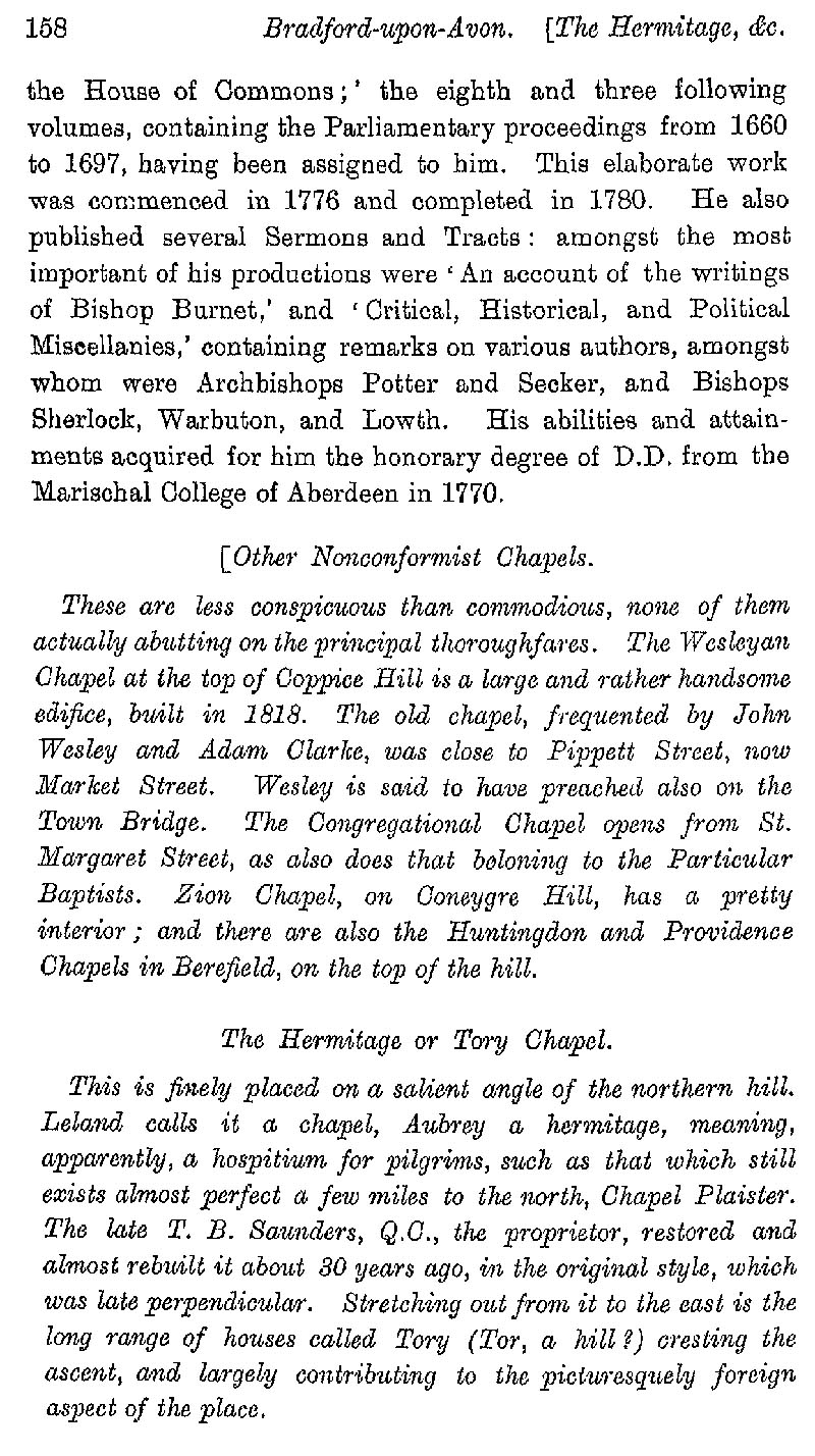 Page 72 The Grove Meeting House, Bradford on Avon; the Hermitage or chapel of St. Mary, Tory.