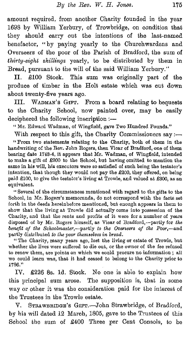 Page 12 The Charity School or Free School, Bradford on Avon; William Yerbury of Trowbridge, Edward Wadham of Wingfield, John Strawbridge.