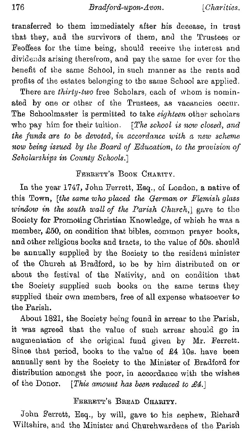 Page 13 The Charity School or Free School, Bradford on Avon; John Strawbridge; Ferrett's Book Charity (John Ferrtt); Ferrett's Bread Charity.