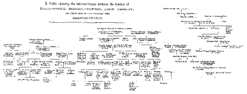 Page 3 Table showing the intermarriages between the Hall, Besill, Rogers, Horton, Long and Yerbury families, Bradford on Avon.