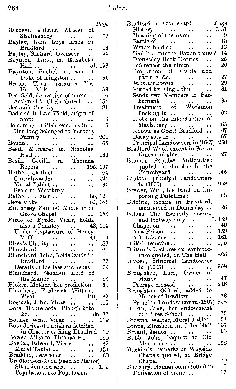 Chapter 10 Index to Bradford-on-Avon; a history and description.