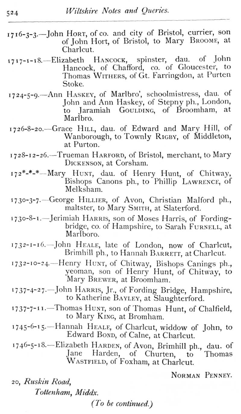 Page 31 Quakers in Wiltshire : marriage records.