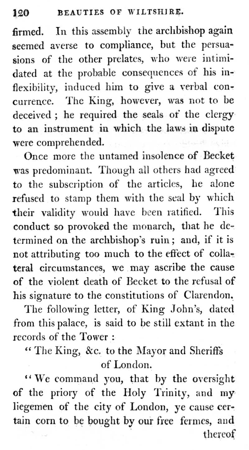 Page 4 History of Clarendon Palace; Henry II and Thomas a Becket.