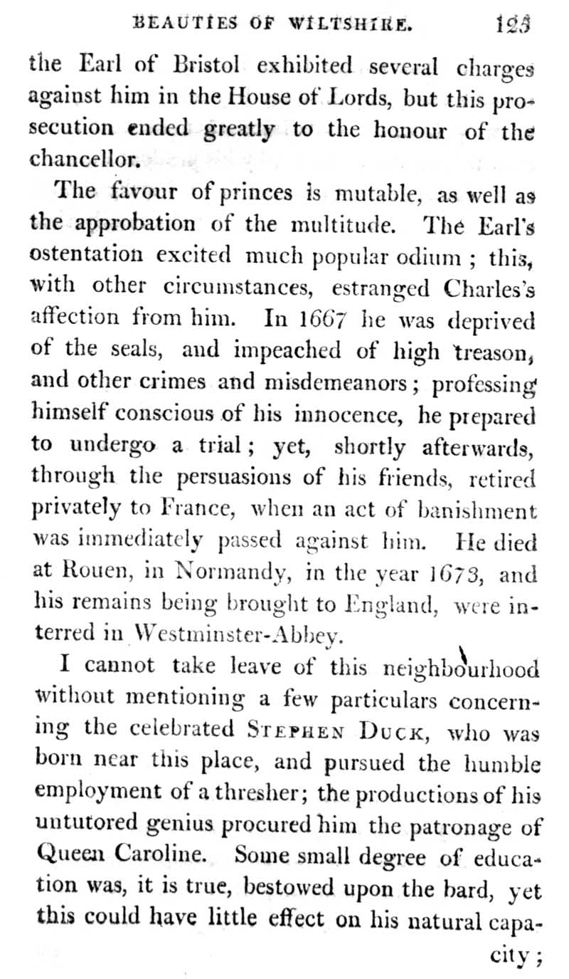 Page 9 Clarendon House and Edward Hyde, Earl of Clarendon. Stephen Duck, the thresher poet.