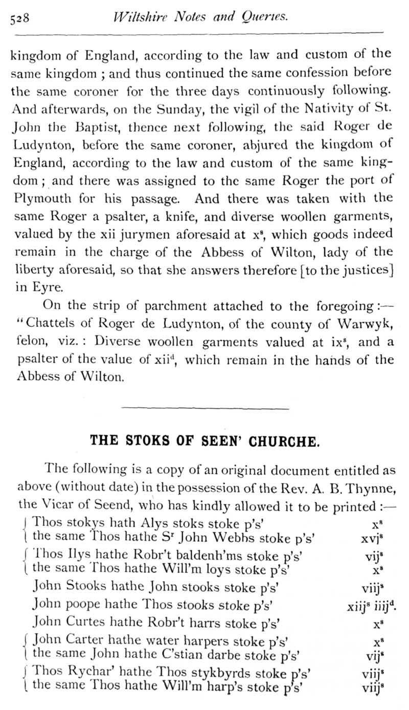Page 35 Sanctuary at Bullbridge, Wilton.The Stokes family of Seend