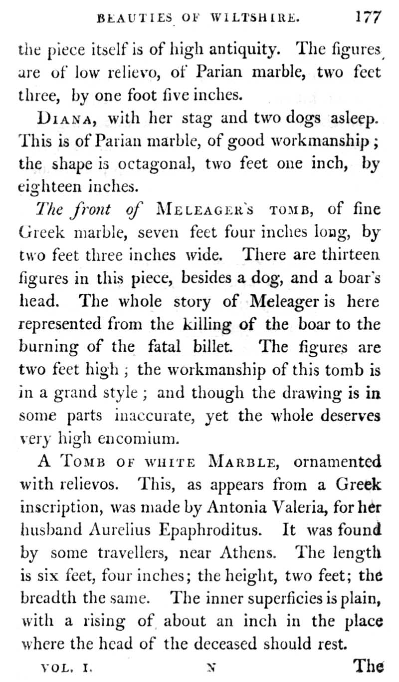 Page 39 Wilton House and the Earls of Pembroke; sculptures; reliefs, Diana, Meleager's tomb.