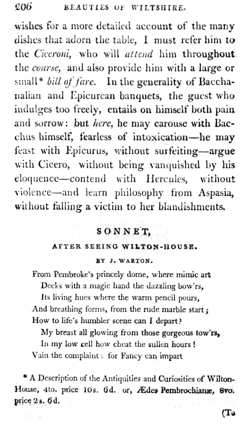Page 68 Wilton House and the Earls of Pembroke; paintings in the house; sonnet on Wilton House by J. Warton.