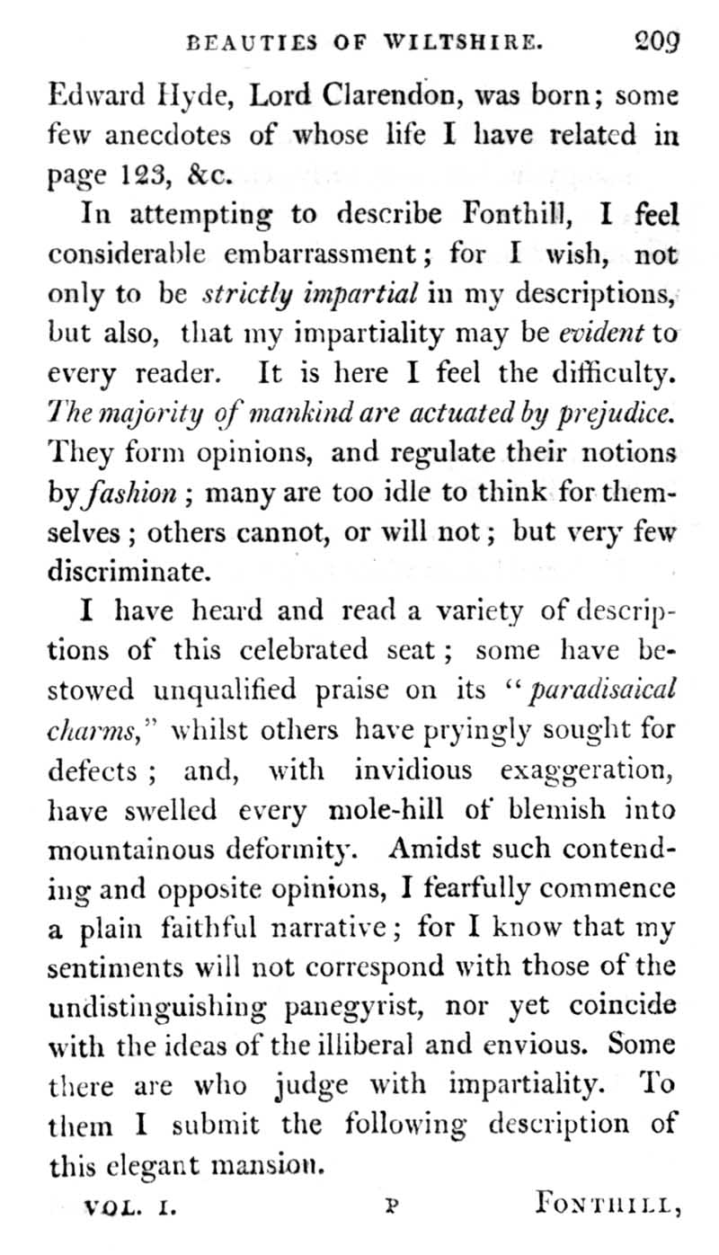 Chapter 11 Fonthill and the late 18th century mansion, with a description of the works of art it contained and an account of the grounds of the house. Notes on Hindon and Tisbury.