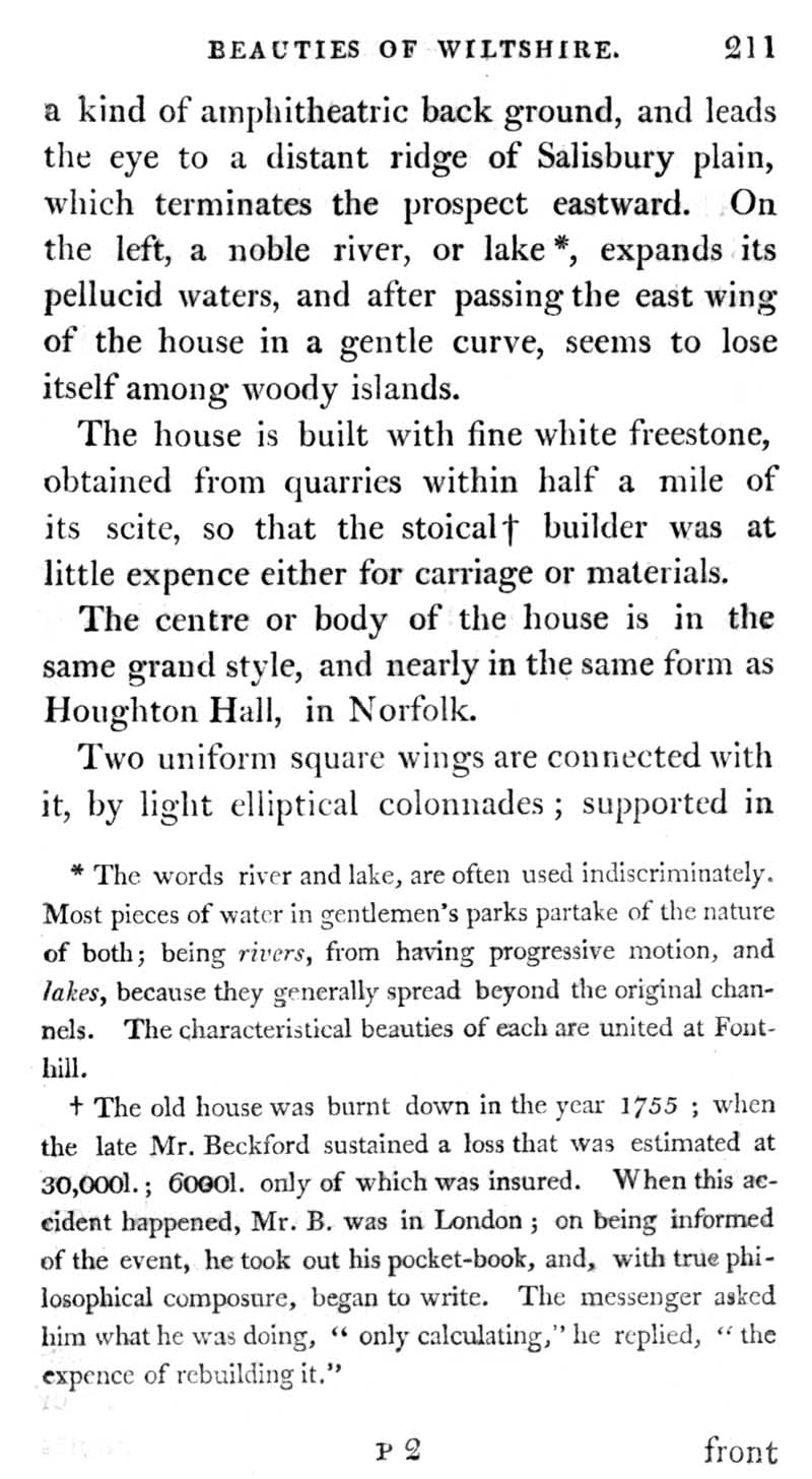 Chapter 11 Fonthill and the late 18th century mansion, with a description of the works of art it contained and an account of the grounds of the house. Notes on Hindon and Tisbury.