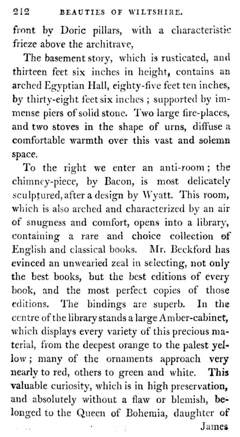 Chapter 11 Fonthill and the late 18th century mansion, with a description of the works of art it contained and an account of the grounds of the house. Notes on Hindon and Tisbury.