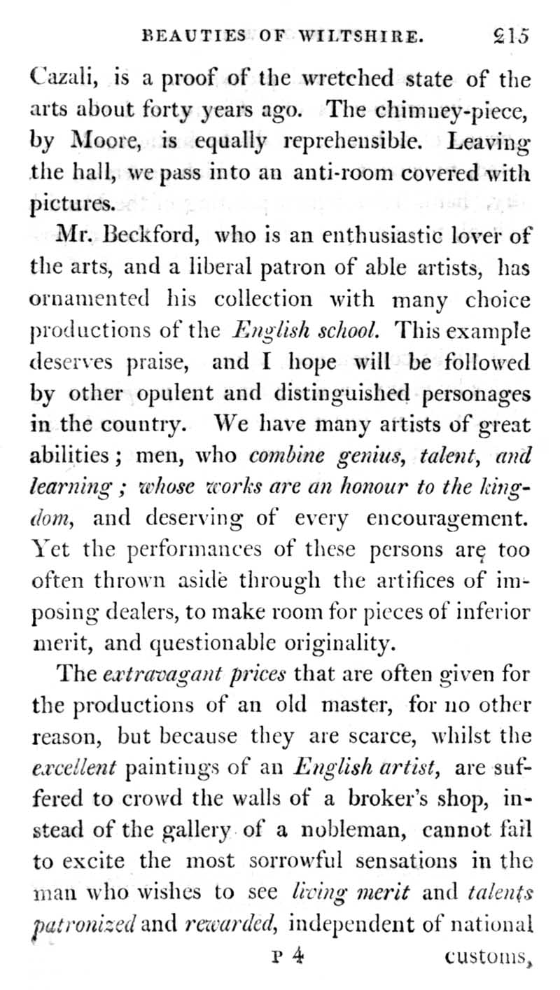 Chapter 11 Fonthill and the late 18th century mansion, with a description of the works of art it contained and an account of the grounds of the house. Notes on Hindon and Tisbury.