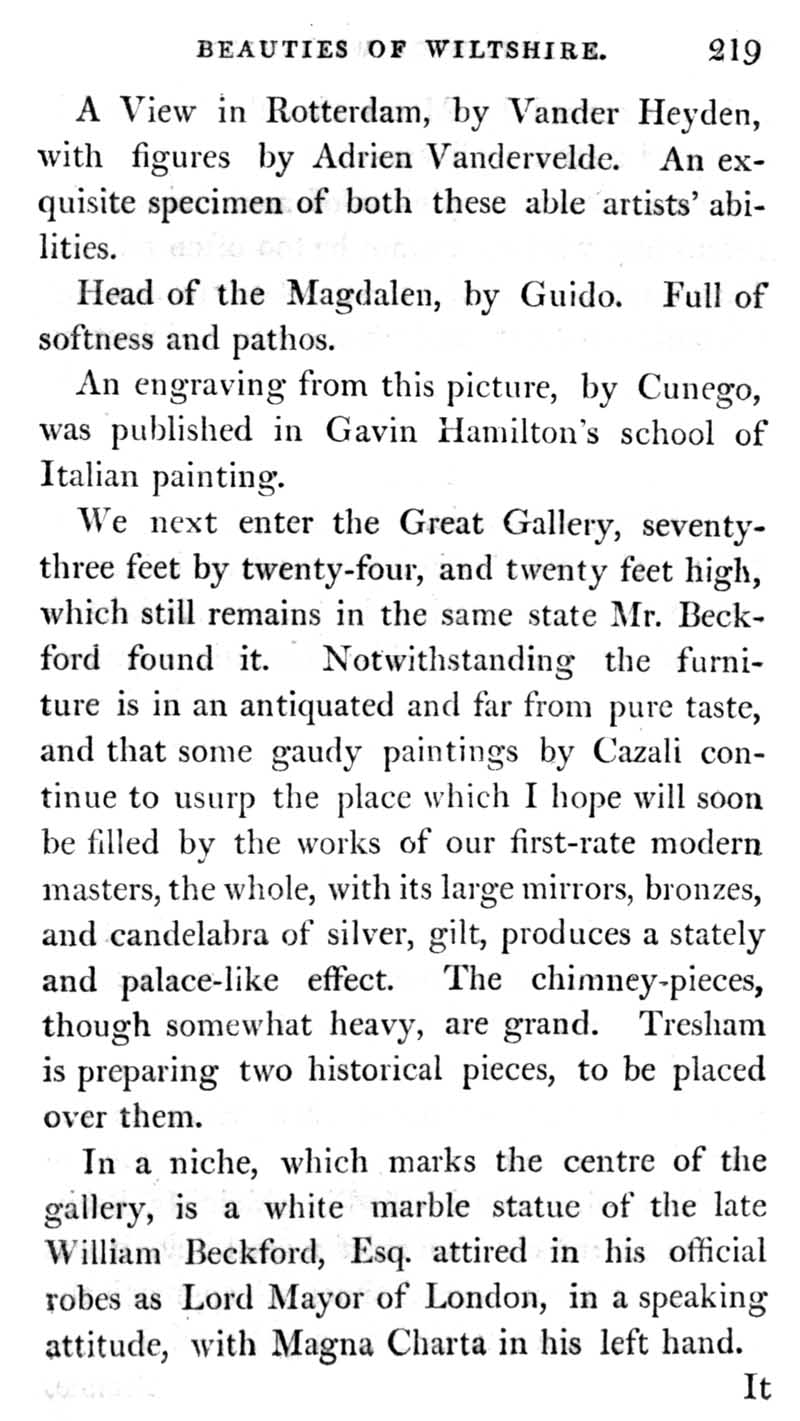 Chapter 11 Fonthill and the late 18th century mansion, with a description of the works of art it contained and an account of the grounds of the house. Notes on Hindon and Tisbury.