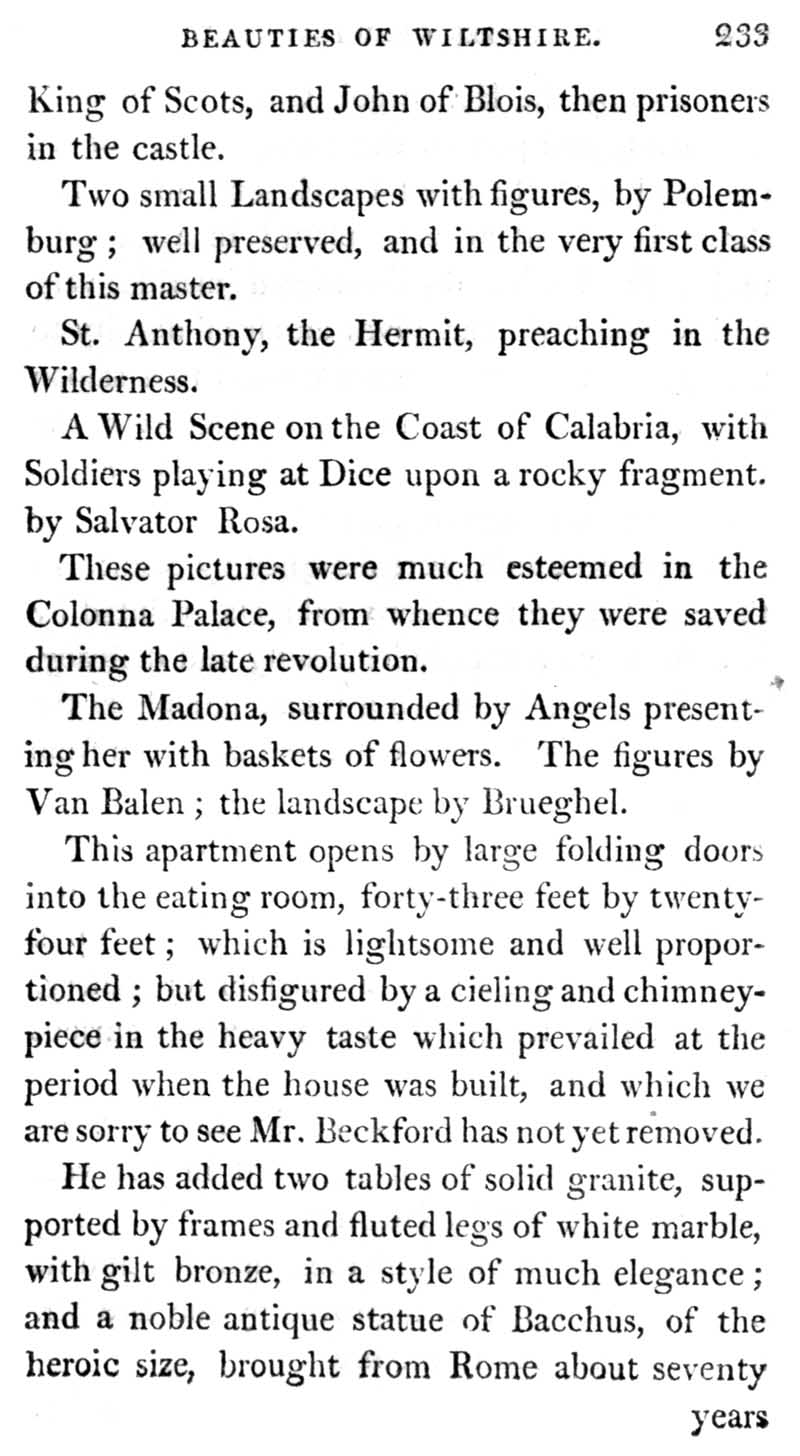 Chapter 11 Fonthill and the late 18th century mansion, with a description of the works of art it contained and an account of the grounds of the house. Notes on Hindon and Tisbury.