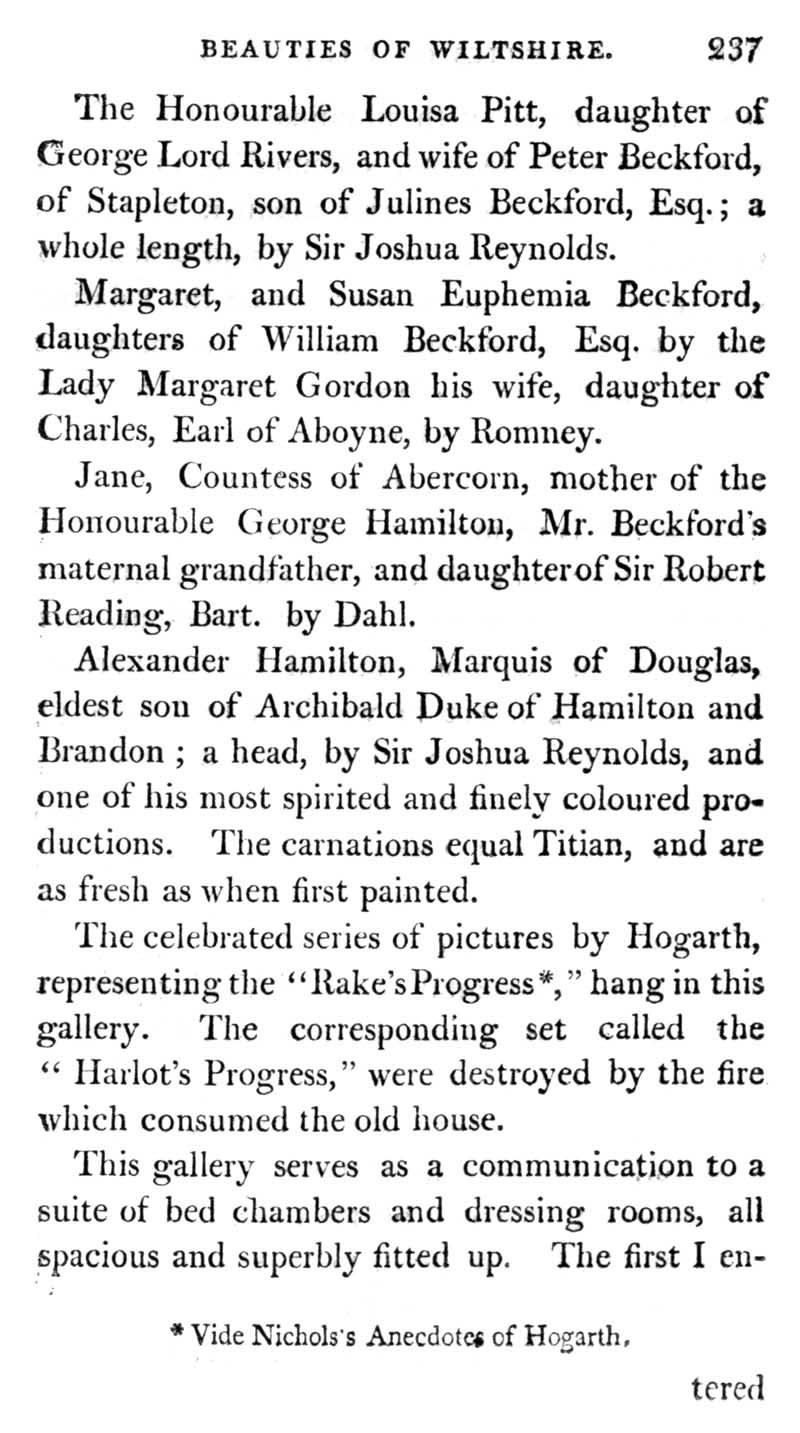 Chapter 11 Fonthill and the late 18th century mansion, with a description of the works of art it contained and an account of the grounds of the house. Notes on Hindon and Tisbury.
