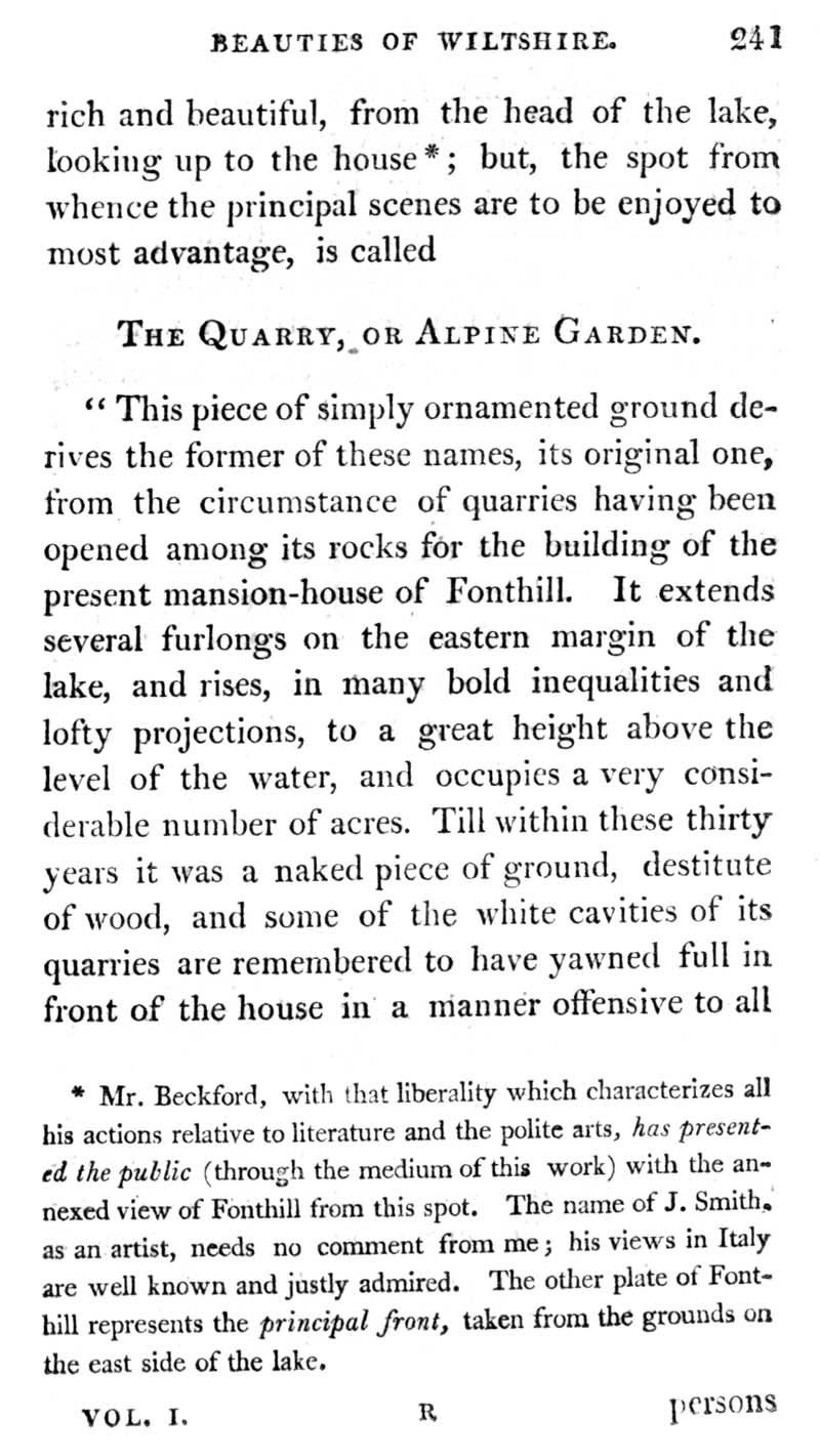 Chapter 11 Fonthill and the late 18th century mansion, with a description of the works of art it contained and an account of the grounds of the house. Notes on Hindon and Tisbury.