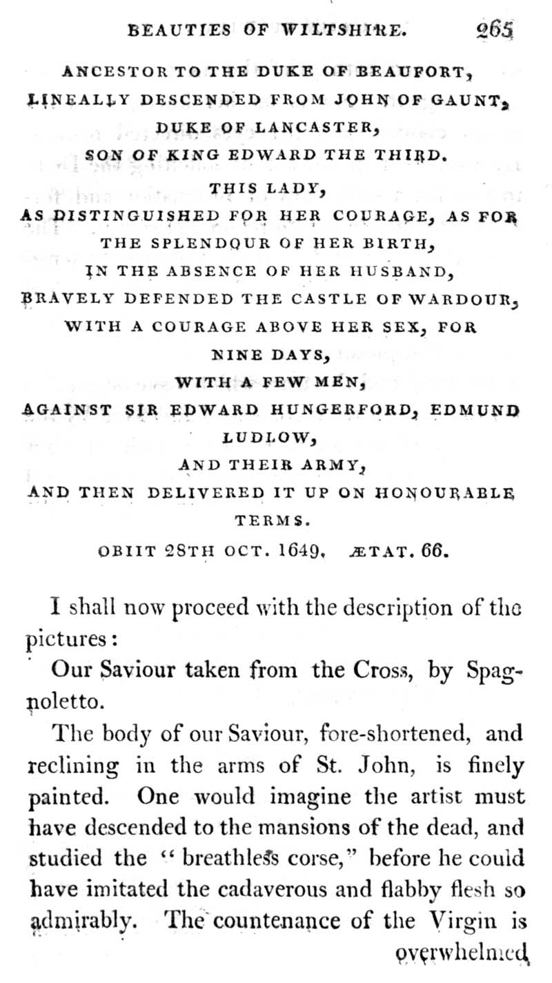 Chapter 12 A description of new Wardour Castle (1776), with details of paintings and other works of art. Includes a short account of the siege of old Wardour Castle and Lady Blanche Arundel's defence of it.