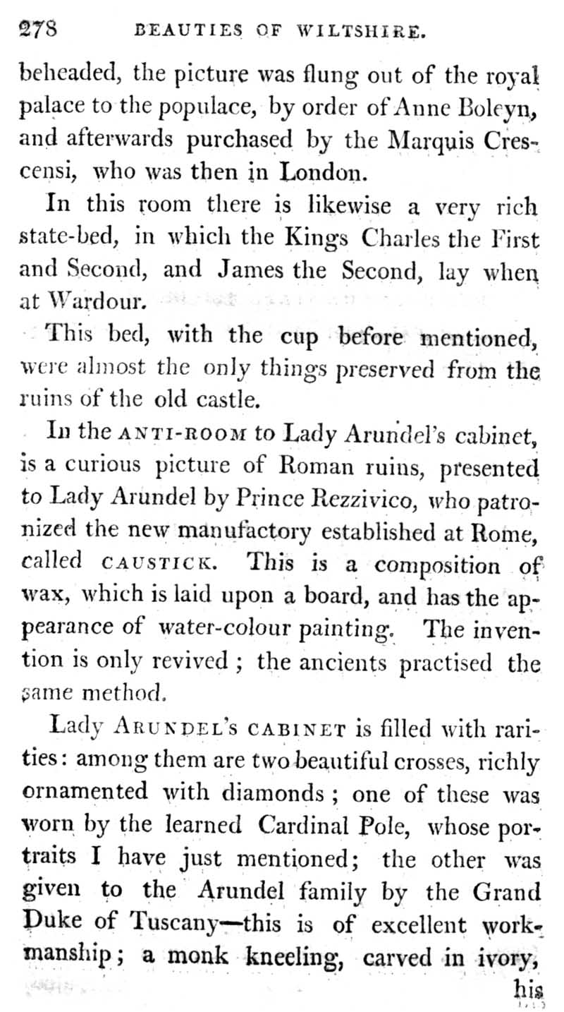 Chapter 12 A description of new Wardour Castle (1776), with details of paintings and other works of art. Includes a short account of the siege of old Wardour Castle and Lady Blanche Arundel's defence of it.