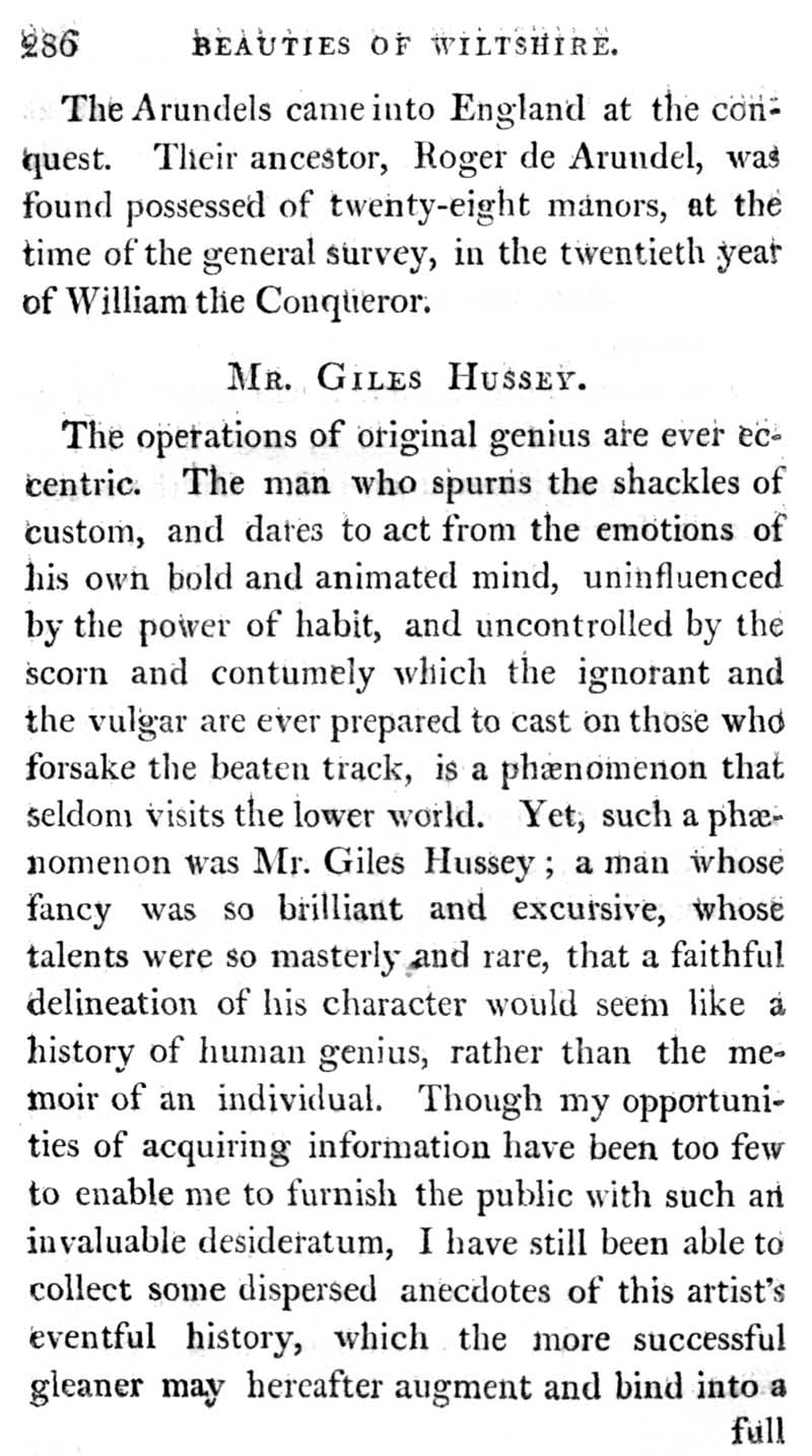Page 6 The Lords Arundel and the ruins of old Wardour Castle. Biographical notes on Giles Hussey.
