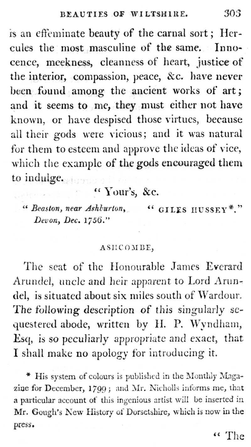 Page 23 Biographical notes on Giles Hussey. Ashcombe, seat of the Hon. Jame Everard Arundel, Berwick St. James.