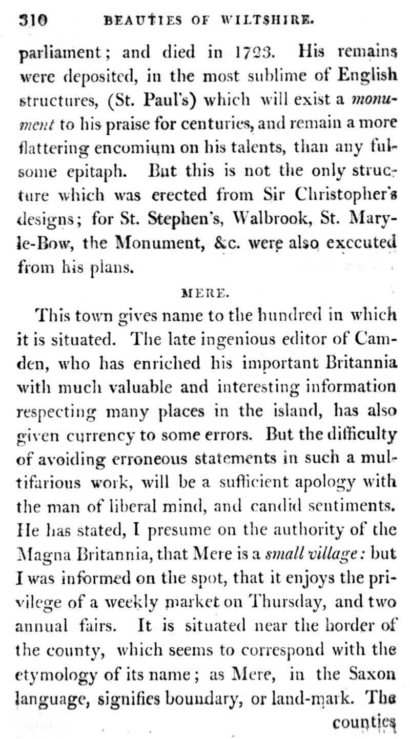Page 5 Sir Christopher Wren and East Knoyle. The town of Mere.