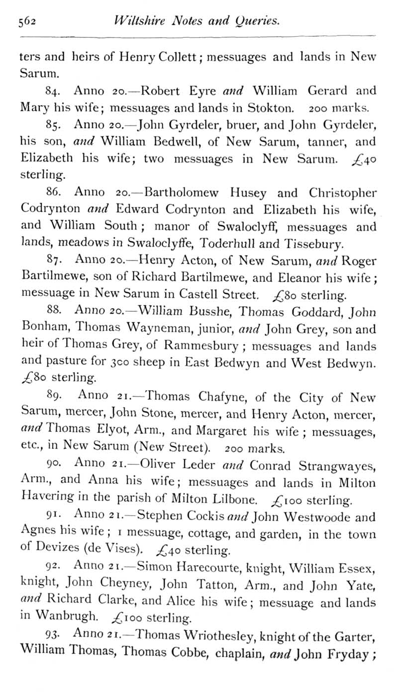 Page 21 Calendar of Feet of Fines for Wiltshire in the reigns of Henry VIII.