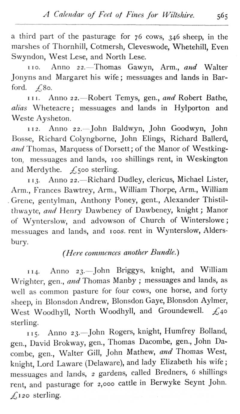 Page 24 Calendar of Feet of Fines for Wiltshire in the reigns of Henry VIII.